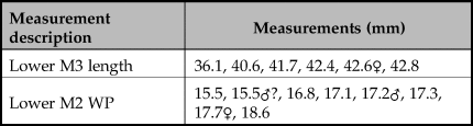 Table 2. Lower M3 lengths and lower M2 WP measurements (mm) used in Figure 5.