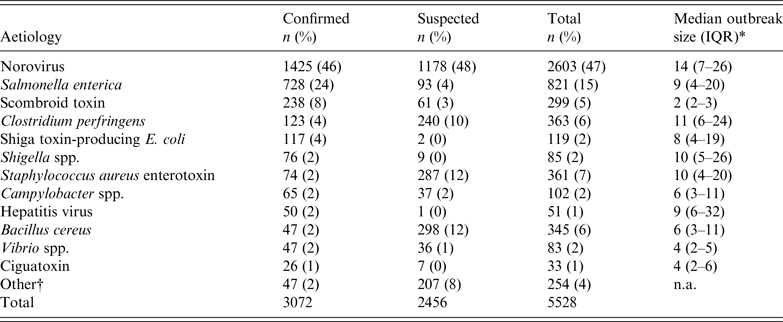 * Interquartile range in outbreaks with confirmed aetiologies.