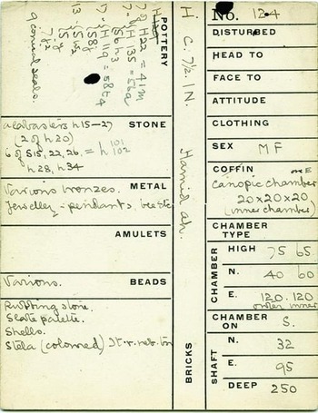 Figure 2. Excavation record for Harageh 124 (UCL Petrie Museum of Egyptian Archaeology archives).