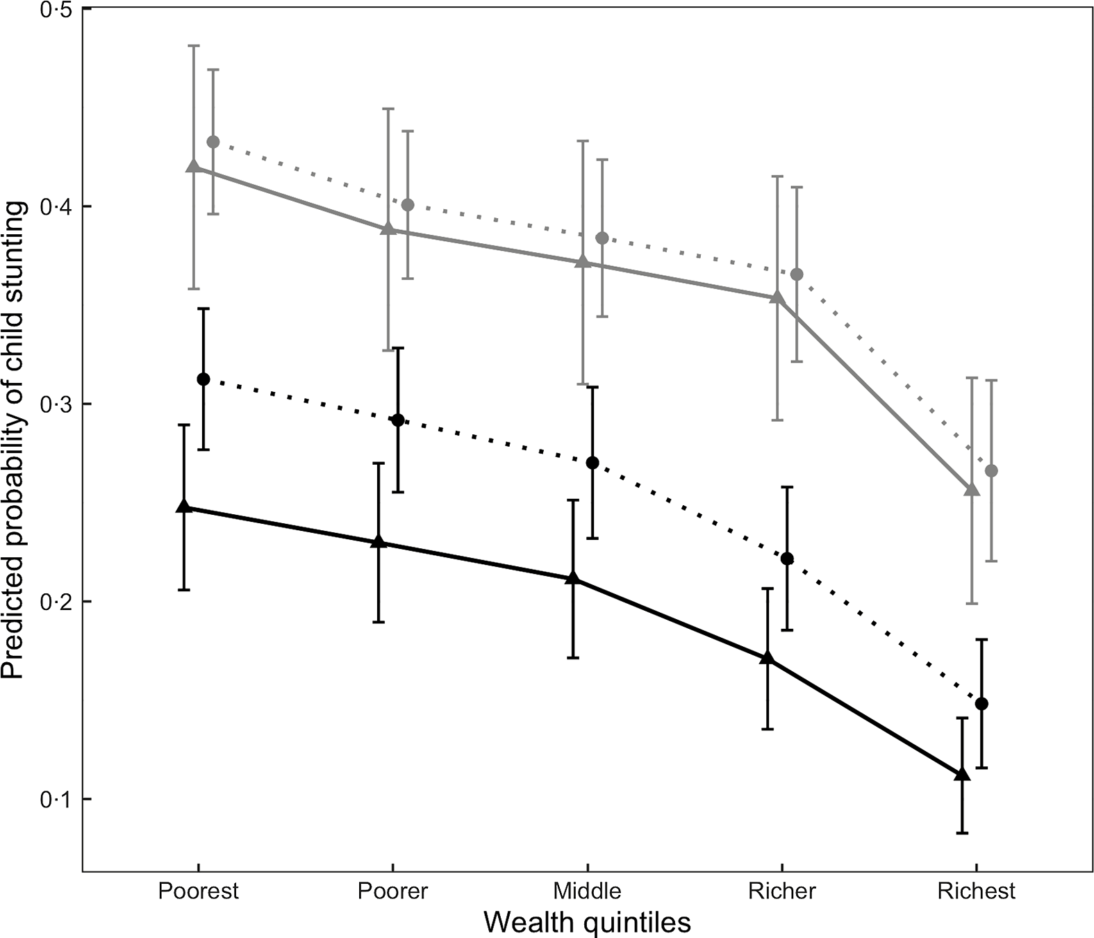 ‡ Model 1: child stunting = α + β1 household wealth + ϵ
