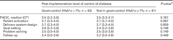 Table 3 Median post-implementation PACIC ratings according to post-implementation level of control of diabetes