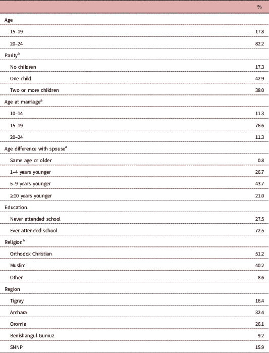 Table 1 Percentage distribution of married adolescent youth aged 15–24 years by characteristics (N=371)
