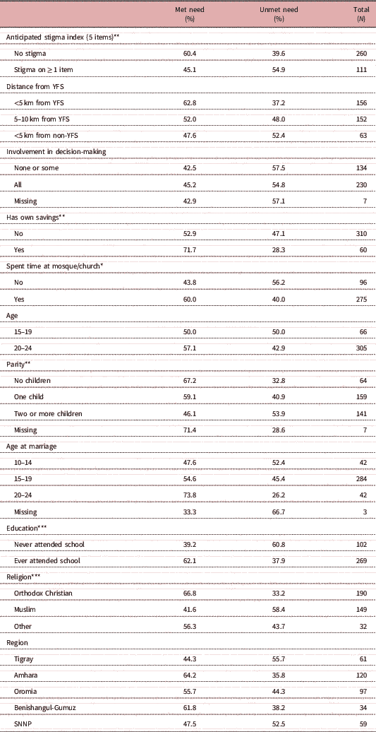 Table 3 Bivariate analysis of unmet need for family planning (N=371)
