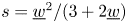 $s=\underline {w}^{2}/(3+2\underline {w})$ since