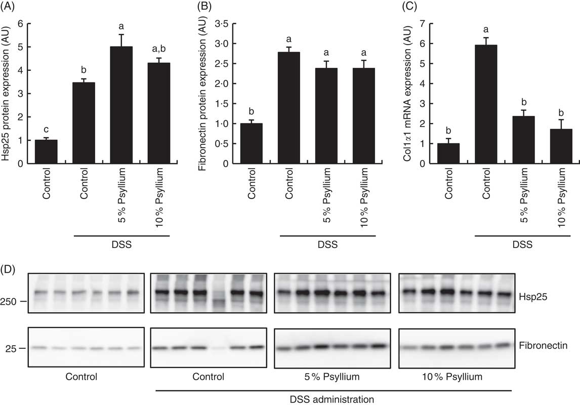 Effect of psyllium fibre on heat-shock protein 25, fibronectin and collagen type Iα1 expression in the colon of dextran sodium sulphate-administered mice