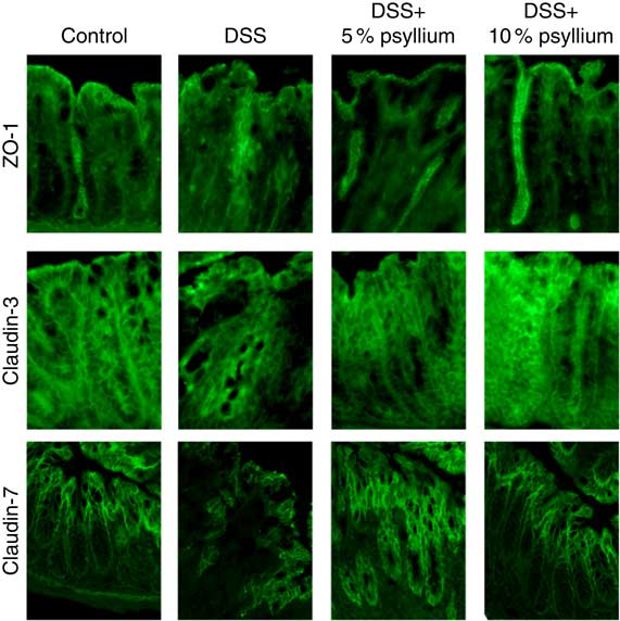 Effect of psyllium fibre on tight junction protein expression in the colon of dextran sodium sulphate-administered mice