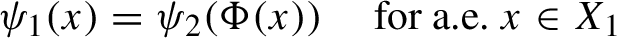 (9.5) $$ \begin{align} \psi_1(x)= \psi_2(\Phi(x))\quad\mbox{ for a.e.}\ x\in X_1 \end{align} $$