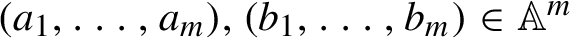 for all $(a_1,\ldots ,a_m),(b_1,\ldots ,b_m)\in \mathbb A^m$ . Since $W<\mathbb Q^m$ is a linear subspace, we may apply a linear isomorphism $A\in \operatorname {GL}_m(\mathbb Q)$ so that $W_1=A(W)$ is precisely the span of the first k standard basis vectors. Applying the inverse of the dual (transpose) linear automorphism to Y, this shows that $Y_1=(A^t)^{-1}(Y)$ satisfies that $Y_1^\perp =W_1$ . Now let $(a_1,\ldots ,a_m)\in Y_1$ . Hence we have $\chi _0(a_jb)=1$ for all $b\in \mathbb Q$ and $j=1,\ldots ,k$ . However, this gives by the properties of $\chi _0$ that $a_j\in \mathbb Q$ for $j=1,\ldots ,k$ . It follows that $Y_1=\mathbb Q^m+\mathbb A\otimes _{\mathbb Q} V_1$ , where $V_1$ is the linear hull of the last $m-k$ basis vectors. Applying $A^t$ to this claim gives the description of Y as in (3).