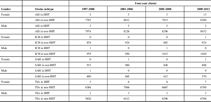 Table 2 Total patient numbers for all stroke types for HHT and non-HHT groups per 4-year cluster