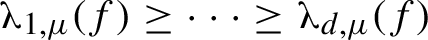 exist and hence are constant $\mu $ -almost everywhere (a.e.). They are called Lyapunov characteristic exponents, or often simply Lyapunov exponents, of f with respect to $\mu $ and are denoted by $\unicode{x3bb} _{1,\mu }(f) \ge \cdots \ge \unicode{x3bb} _{d,\mu }(f)$ . For the full Oseledets theorem (which also describes the growth of tangent vectors), see e.g. [Reference Arnold3, Reference Barreira and Pesin6]. The Lyapunov spectrum is defined as the vector