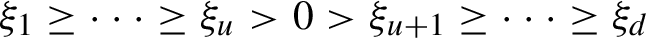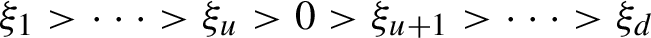 (1.9) $$ \begin{align} \xi_1>\xi_2>\xi_3, \quad \xi_u>0>\xi_{u+1}, \quad \mathrm{and} \quad \boldsymbol{\xi} \preccurlyeq \boldsymbol{\unicode{x3bb}}(L). \end{align} $$