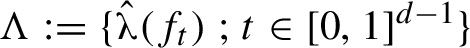 Figure 2 Illustration of Proposition 2.1 for $d=3$. The images of the edges of the square $[0,1]^2$ under the map $t \mapsto \hat {\boldsymbol {\unicode{x3bb} }}(f_t)$ stay on the strips determined by conditions (2.4) and (2.5). Corollary 2.2 tells us that the image of this map is a set $\Lambda $ that contains the small gray square and is contained in the big square.