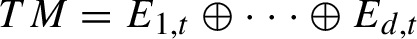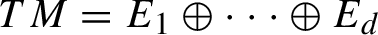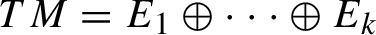 It is always possible to find an ‘adapted’ Riemannian metric for which ${n_0 = 1}$ : see [Reference Gourmelon23]. Dominated splittings are automatically continuous, and their existence is a $C^1$ -open condition; see e.g. [Reference Bonatti, Díaz and Viana14, §B.1] for these and other properties. We say that a dominated splitting is simple if all the sub-bundles $E_j$ are one-dimensional (and so $k=d$ ). In this case, the Oseledets splitting coincides with $E_1 \oplus \cdots \oplus E_d$ a.e., the Lyapunov spectrum is simple, and the Lyapunov exponents with respect to invariant volume m are given by integrals: