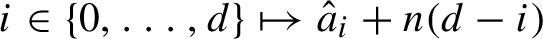 The function $i \in \{0,\ldots ,d\} \mapsto \hat {a}_i + n(d-i)$ is integer-valued, strictly concave, and attains a maximum at $i=k$ , where k is the number of negative factors in the product $\prod _{j=1}^d (n-a_j)$ . Using that $2\sum _{j=1}^{\infty } b^{-j} \le 1$ , we see that the term corresponding to $i=k$ in the right-hand side of equation (7.2) is bigger in absolute value than the sum of all other terms. So the sign of $P(b^n)$ is $(-1)^k$ , thus proving equation (7.1).