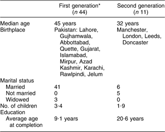 *Forty participants were born in Pakistan, three were from India and one from East Africa, although all considered themselves ‘Pakistani’.