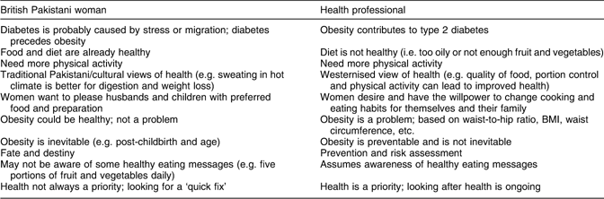 Table 3 Some possible differences between the health and lifestyle viewpoints of British Pakistani women and UK health professionals