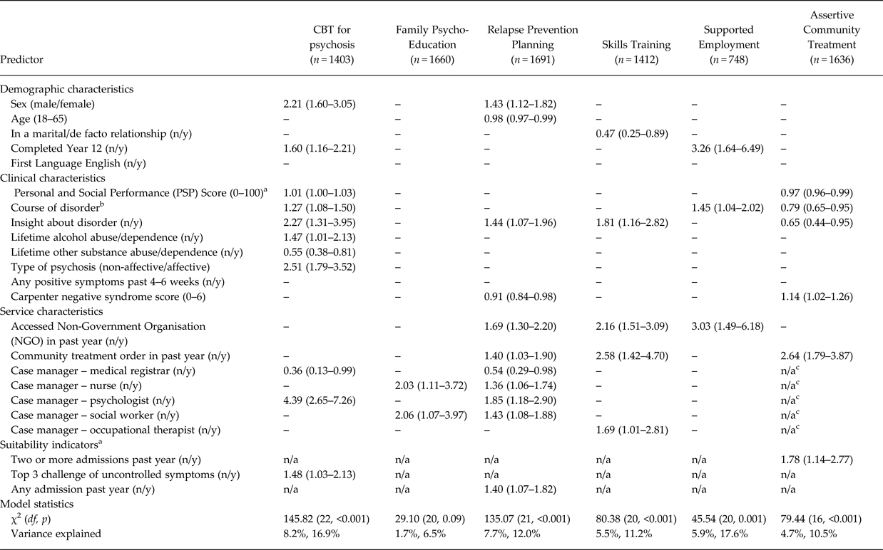 Table 4. Suitability indicators for psychosocial interventions and associations with receipt