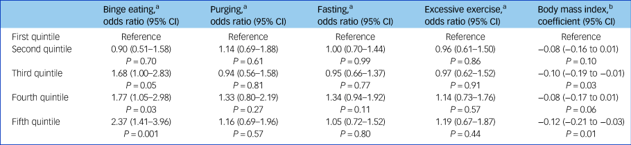 Table 4 Multilevel logistic and linear regression models for the association between quintiles of polygenic risk scores for schizophrenia and disordered eating and body mass index