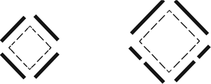 Fig. 22. Four short lines form the smaller square (left). Two more squares of different sizes are recognized (right), containing four and six linear segments.
