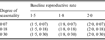 Table 2. Combination of (baseline reproductive rate, degree of seasonality) values in the seasonality experiments