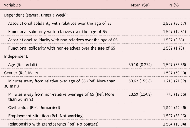 Secondly, to answer the question about possible differences between the practice of intra- and extrafamily solidarity in terms of explanatory factors, an analysis using logistic regression was performed. This analysis compared the intrafamily practices to the extrafamily practices in 2018, following the procedure explained in the Data and Method section. Table 7 presents a description of the variables included in the regressions.