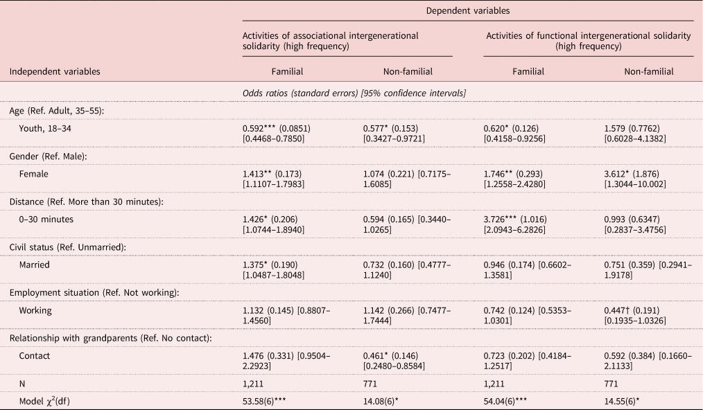 Table 8. Logistic regression of associative and functional intergenerational solidarity