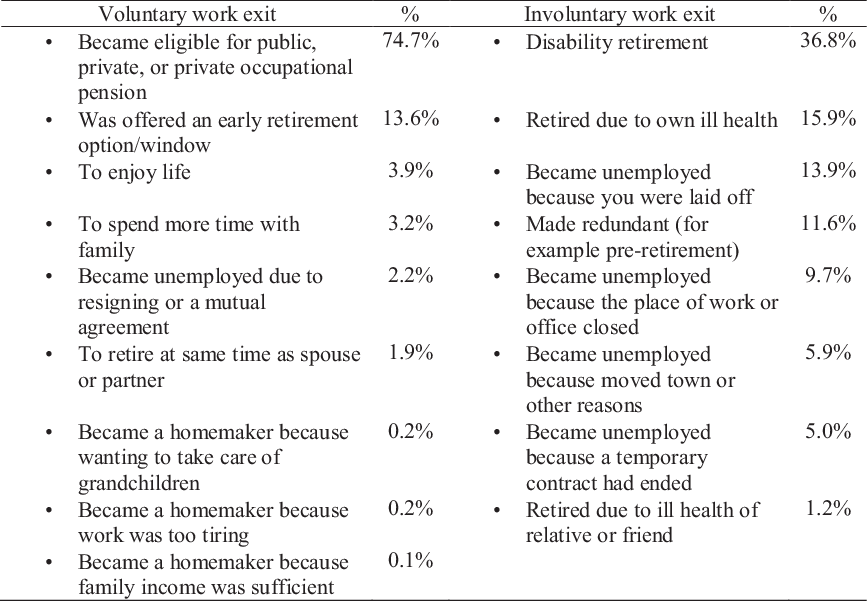 FIGURE 2. Reasons for a voluntary and involuntary work exit.