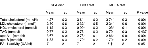 Table 1 Plasma lipid, lipoprotein and Plasminogen Activator Inhibitor Type 1 (PAI-1) activity values after each dietary period