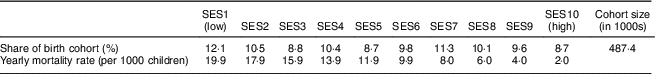 Table 1 Distribution of birth cohort and mortality rate by socio-economic status (SES wealth index decile) among 6–23-month-old children from Faisalabad and Hyderabad districts, Pakistan