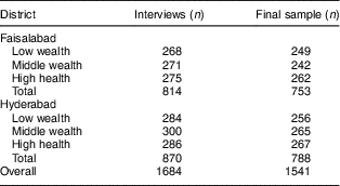 Authors’ survey of households with 6–23-month-old children from Faisalabad and Hyderabad districts, Pakistan.