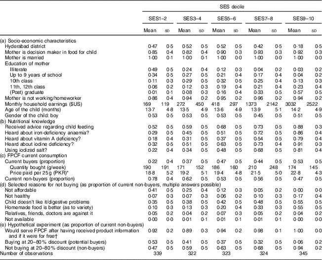 Table 4 Characteristics and current consumption behaviour, by socio-economic status (SES wealth index decile), in households with 6–23-month-old children from Faisalabad and Hyderabad districts, Pakistan