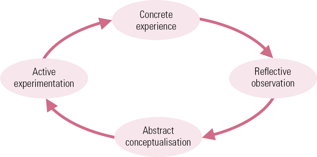 Recognising the influence of Reference KolbDewey, Kolb (1984) proposed a similar model of cyclical experiential learning where concrete experience is observed and described, reflection leads to abstraction and decontextualisation, and the product theory can be tested in future encounters with concrete experience (Fig. 1).