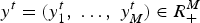 $y^t = \lpar y_1^t\comma \; \ldots\comma \; y_M^t \rpar \in R_ + ^M $, which is formally expressed as follows: