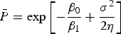 $\bar P = \exp \left[{ - \displaystyle{{\beta _0} \over {\beta _1}} + \displaystyle{{\sigma ^2} \over {2\eta}}} \right]$