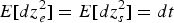 $E\lsqb dz_e^2 \rsqb = E\lsqb dz_s^2 \rsqb = dt$