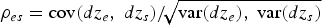 $\rho _{es} = {{\rm cov} \lpar dz_e\comma \; dz_s\rpar } /\/\! \sqrt{{\rm var} \lpar dz_e\rpar \comma \; {\rm var} \lpar dz_s\rpar }$