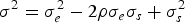 $\sigma ^2 = \sigma _e^2 - 2 \rho \sigma _e \sigma _s + \sigma _s^2 $