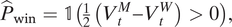 $ {\hat{P}}_{\mathrm{win}}=\Phi \left(\frac{1}{2}\left({\hat{V}}_t^M-{\hat{V}}_t^W\right)\right), $