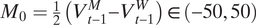 $ {M}_0=\frac{1}{2}\left({V}_{t-1}^M-{V}_{t-1}^W\right)\hskip1.5pt \in \hskip1.5pt \left(-50,50\right) $