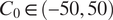 $ {C}_0\hskip1.5pt \in \hskip1.5pt \left(-50,50\right) $