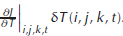 For each variable of the forward model state there exists a dual variable of the adjoint model state. Focusing most of our discussion on temperature, T (i, j, k, t ), at each point in space, (i, j, k), and time, t , the corresponding adjoint variable, δ *T (i, j, k, t), is the gradient of the objective function, J, with respect to T at position (i, j, k) and time t :