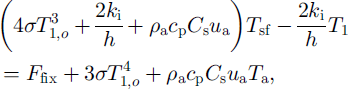 To this end, the outgoing longwave radiation term in Equation (4) must be linearized with respect to some reference temperature. The topmost layer temperature from the previous time-step t1, can be used as this reference temperature. An expansion of ts{ with respect to t1, 0 gives (to first order)