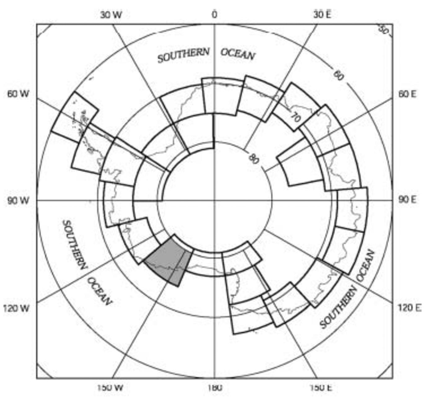 5. to compile a 1 : 5 000 000 scale map of Antarctica derived from the 24 1 : 1 000 000 scale maps. Each 1 : 1 000 000 scale map extends to the southernmost nunatak within each map area or to the southernmost extent of Landsat images (about 81.5˚ S lat.).