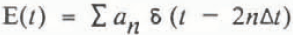 where Τ is the transmission coefficient, and the order of the subscripts indicates the direction of propagation across each interface. Now each term in the time sequence (2) is just the amplitude (an ) of an impulse arriving at a discrete time delay equal to the product of the integer n and the common time delay (∆t) throughout each layer. Hence we can write the time series as