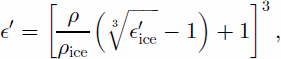 Reference LooyengaLooyenga (1965) derived a relation that connects density and permittivity of a constant mixture from a theoretical model. Application to polar ice yields an expression for the permittivity of the mixture: