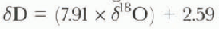 Samples of bubbly glacier ice which reaches the sea in Terra Nova Bay (Fig. 3, inset), are aligned on a straight line in a diagram with equation (correlation coefficient 0.997; 55 samples). The b values are more negative than -17% in and -130% in δD. The straight line which can be considered as a local Meteoric Water Line or precipitation line goes close to Standard Mean Ocean Water. The δ values of the mellwaiers from glacier ice will have the same isotopic composition since there is no fractionation on glacier ice melting.