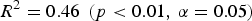 $R^2 = 0.46 \; \left(p \lt 0.01,\, \alpha = 0.05\right)$.