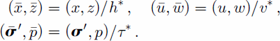 In a manner typical for ice-sheet modelling, we eliminate physical dimensions from Equations (2.2) and (2.3) by adopting characteristic magnitudes: h*, a typical ice depth, used as a length scale; v*, a typical accumulation rate, used as a velocity unit; and τ* = pgh*, used as a stress unit. In terms of these scaling parameters, we introduce dimensionless variables defined by