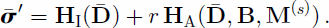 The adopted viscous flow law expresses the deviatoric stress σ' in terms of the current strain rate D, the left Cauchy–Green deformation tensor B, and three structure tensors M (s)