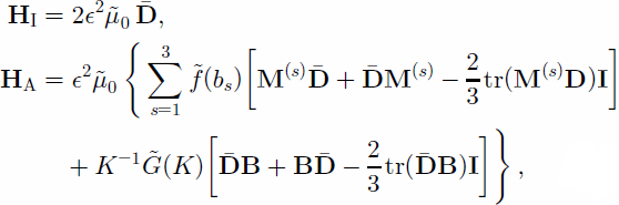+ b2 + b3. The vanishing of the anisotropic part HA in the initial isotropic state B = I provides the normalization condition